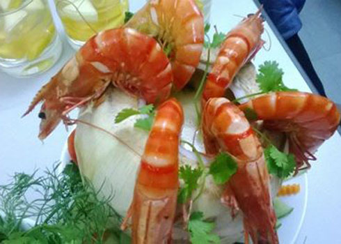 - Khi ăn, bóc tôm ăn kèm với nước sốt, rau thơm. Ngoài ra, bạn cũng có thể chấm muối tiêu vắt chanh hay tương ớt, tùy khẩu vị của bạn.